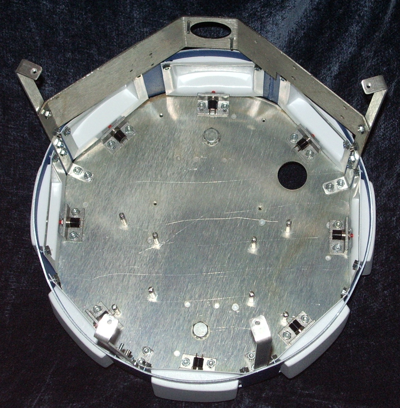 Items included: Complete RB Robot chassis, Bump Switches, (2) Motor Assemblies, (2) Balance Casters, Battery Brackets, Sonar Transducer Bracket, Charge Pins, and a Dome.